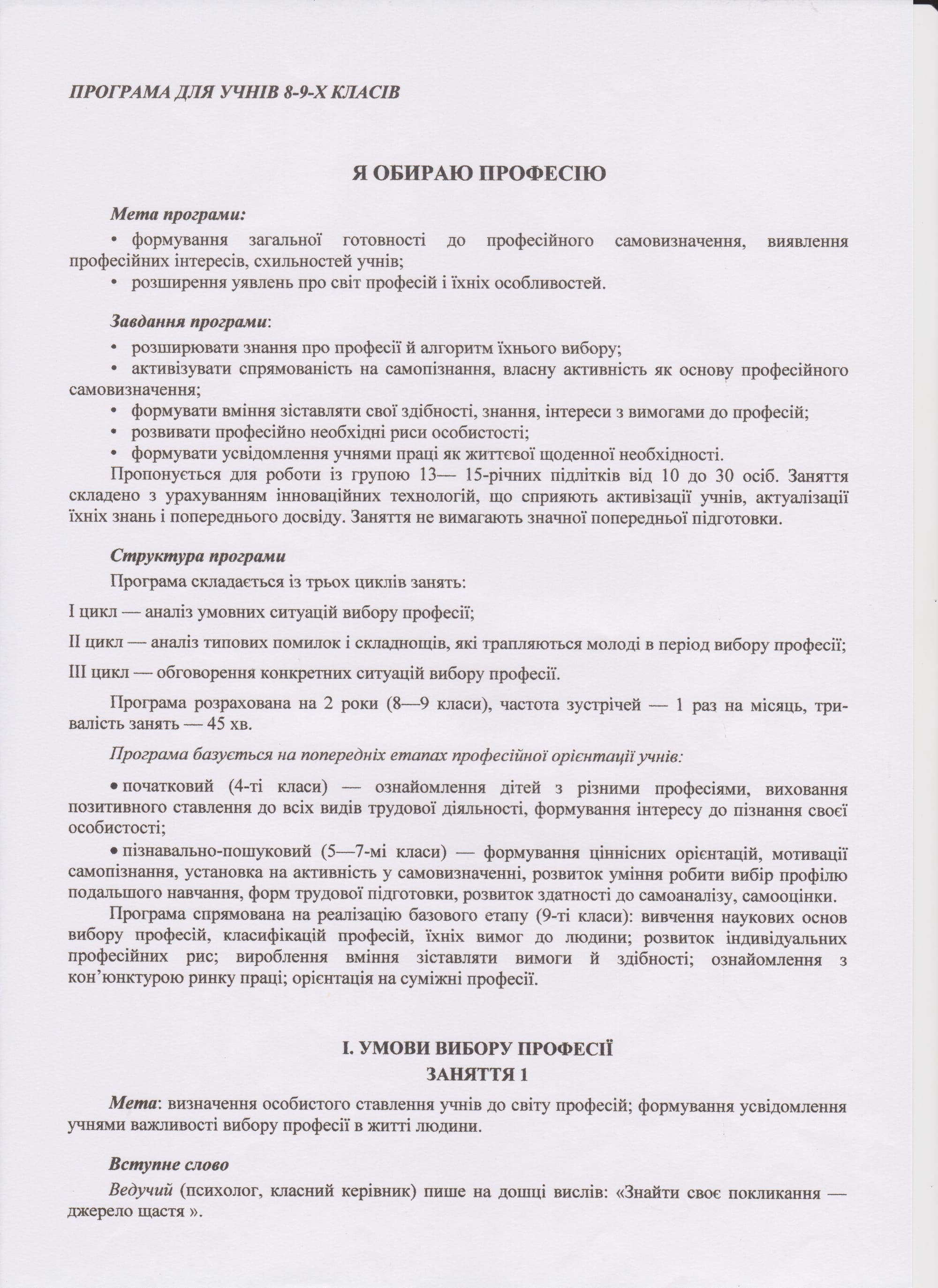 профільному та професійному самовизначенню здобувачів освіти, формуванню життєвої компетентності;
